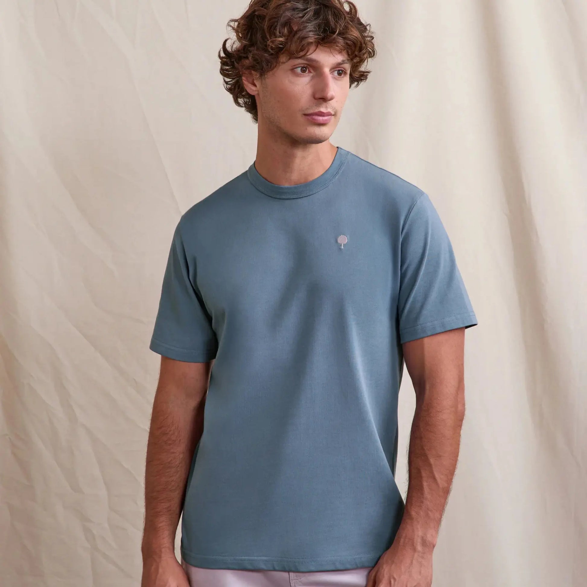 Le t-shirt homme bleu MASSOURY adopte une allure rétro dans une matière innovante issue de filets de pêche récupérés en mer. Ce jersey associant coton et polyamide InResT valorise une ressource existante dans une démarche responsable. La sérigraphie “Flower art opening” au dos attire le regard. La broderie arbre contrastée signe la pièce. La coupe large assure un porté décontracté.