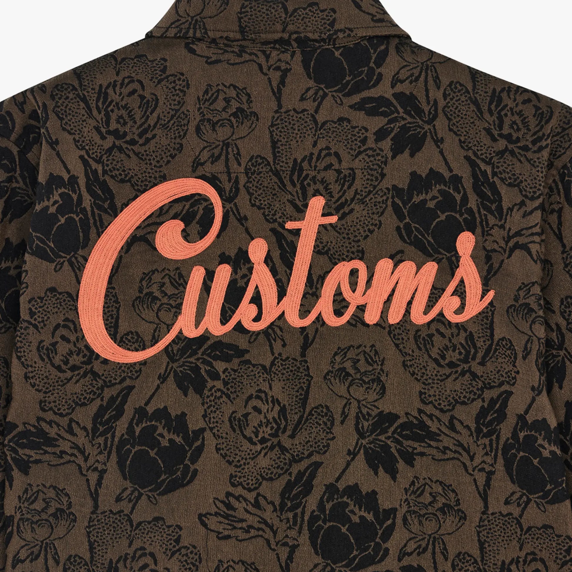 Veste coupe décontractée ornée de broderies sur la poitrine et le dos, en jacquard à motif imprimé sur toute la surface, poches passepoilées basses sur le devant, fermeture éclair centrale, ajustement par boutons-pression aux poignets et à l'ourlet, confectionnée en jacquard de coton avec un délavage enzymatique intensif.