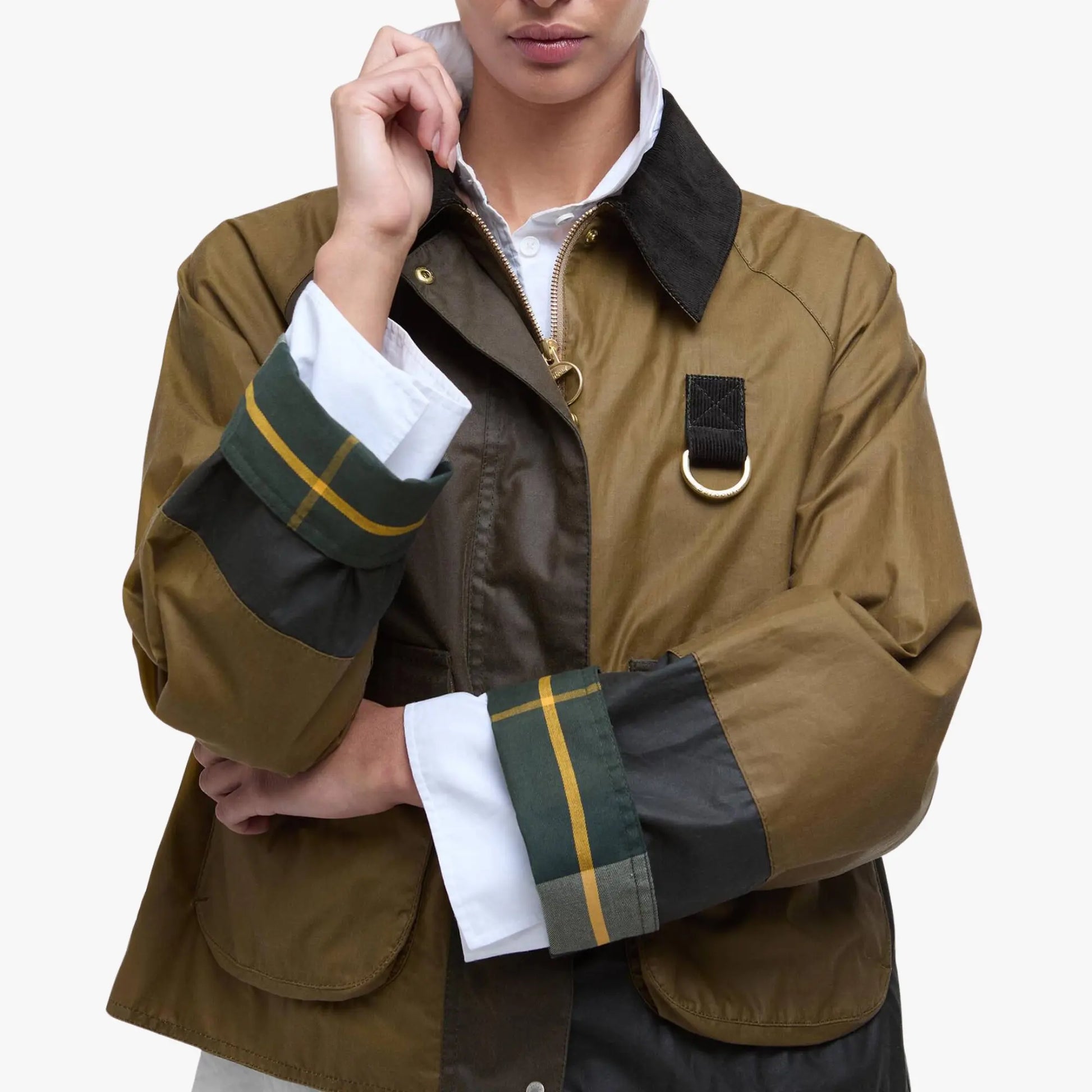 Inspirée de l'emblématique veste Spey, la veste cirée Alma de Barbour revisite ce classique intemporel avec une touche de modernité. Sa coupe courte trapèze se distingue par des empiècements color block sur le corps et les manches, apportant une note contemporaine à la conception traditionnelle en coton ciré. Le col en velours côtelé, la fermeture à anneau en D et les poches à soufflet préservent l'esthétique authentique de Barbour, tandis que la doublure et les dessous de poignets en tartan ajoutent une note de charme traditionnel. L'Alma est un parfait mélange de tradition et d'innovation, témoignant de l'engagement de Barbour envers un savoir-faire d'exception et un style intemporel.