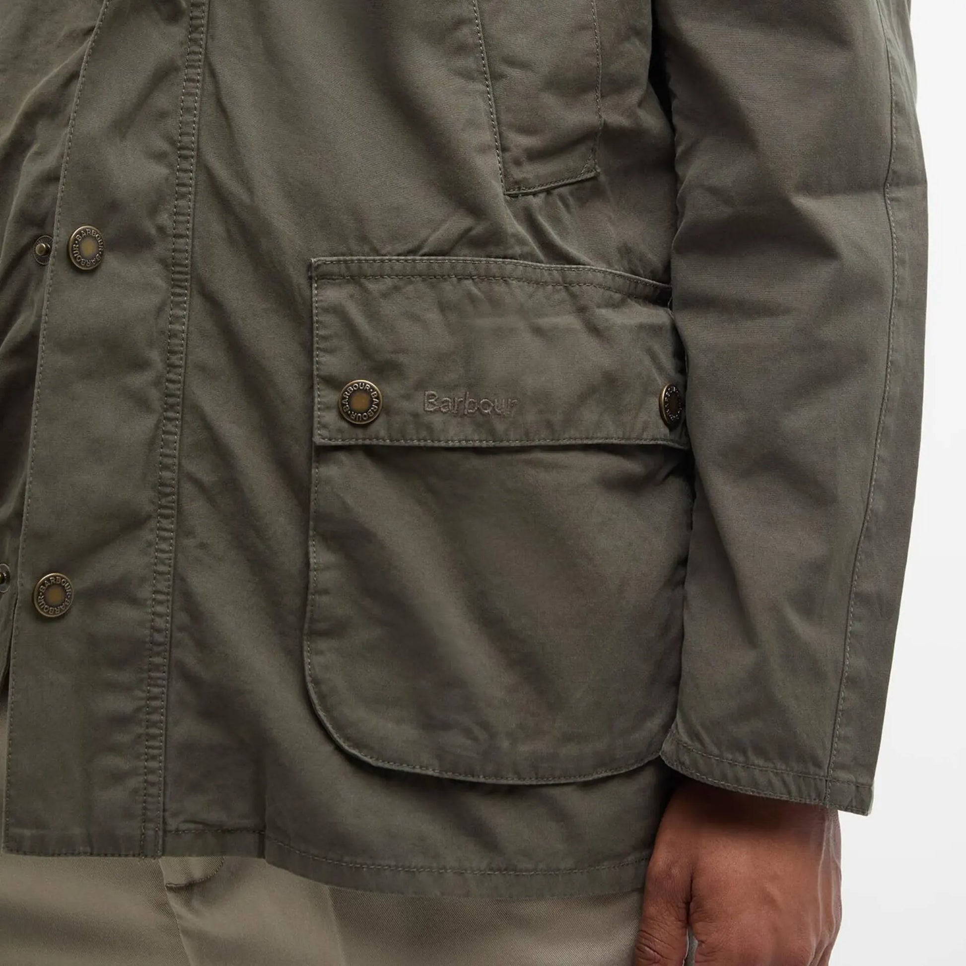Dotée d'un col montant en velours côtelé et d'une fermeture éclair dissimulée sous une patte de boutonnage à boutons-pression, la veste décontractée Barbour Ashby possède des poches chauffe-mains et deux poches basses à soufflet offrant un espace de rangement optimal. Confectionnée en coton 100 % respirant, cette veste est ornée d'une broderie Barbour sur le rabat de la poche inférieure.